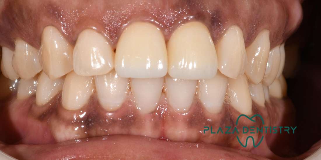By adding cosmetic crowns to this patient we were able to repair this patients front teeth.